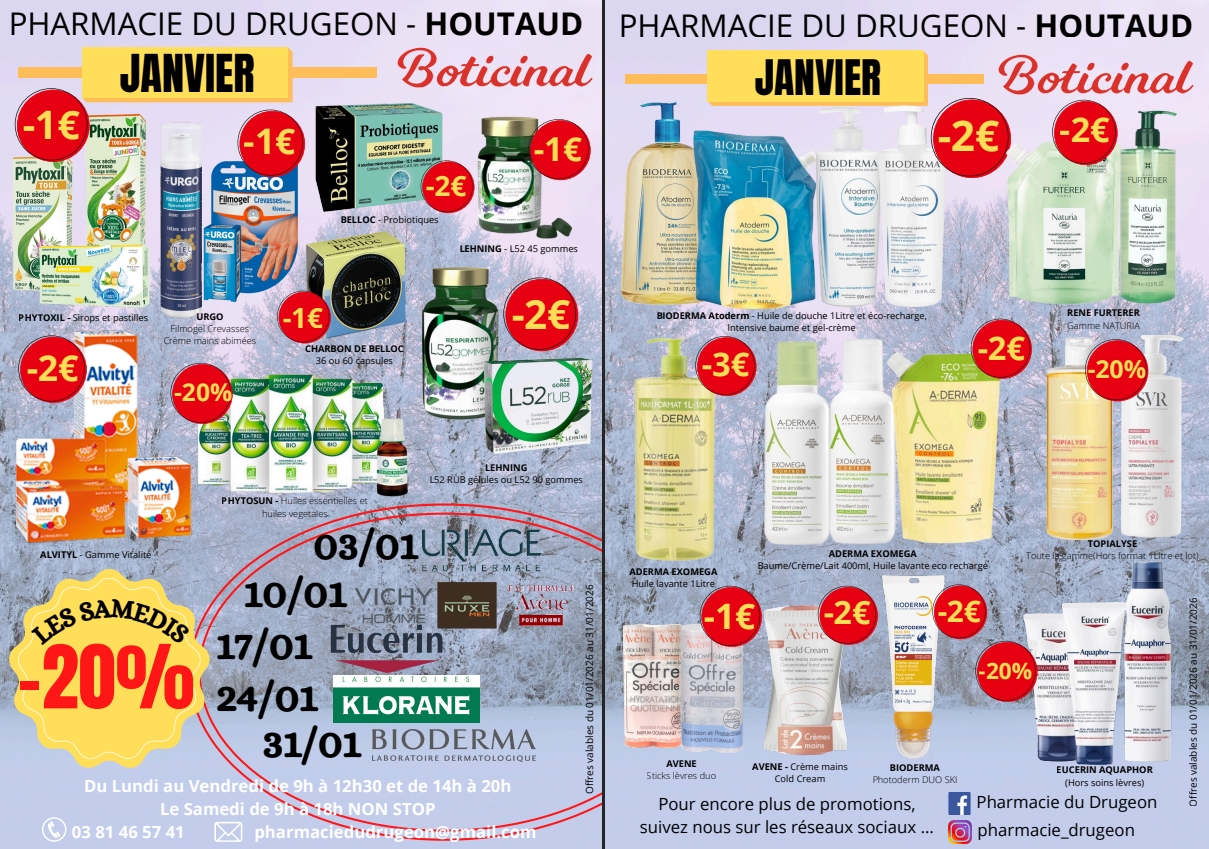 La Pharmacie du Drugeon vous propose avec la carte de fidélité Boticinal un cumul de 2% de votre achat à chaque passage en caisse + 5€ offerts à chaque anniversaire.